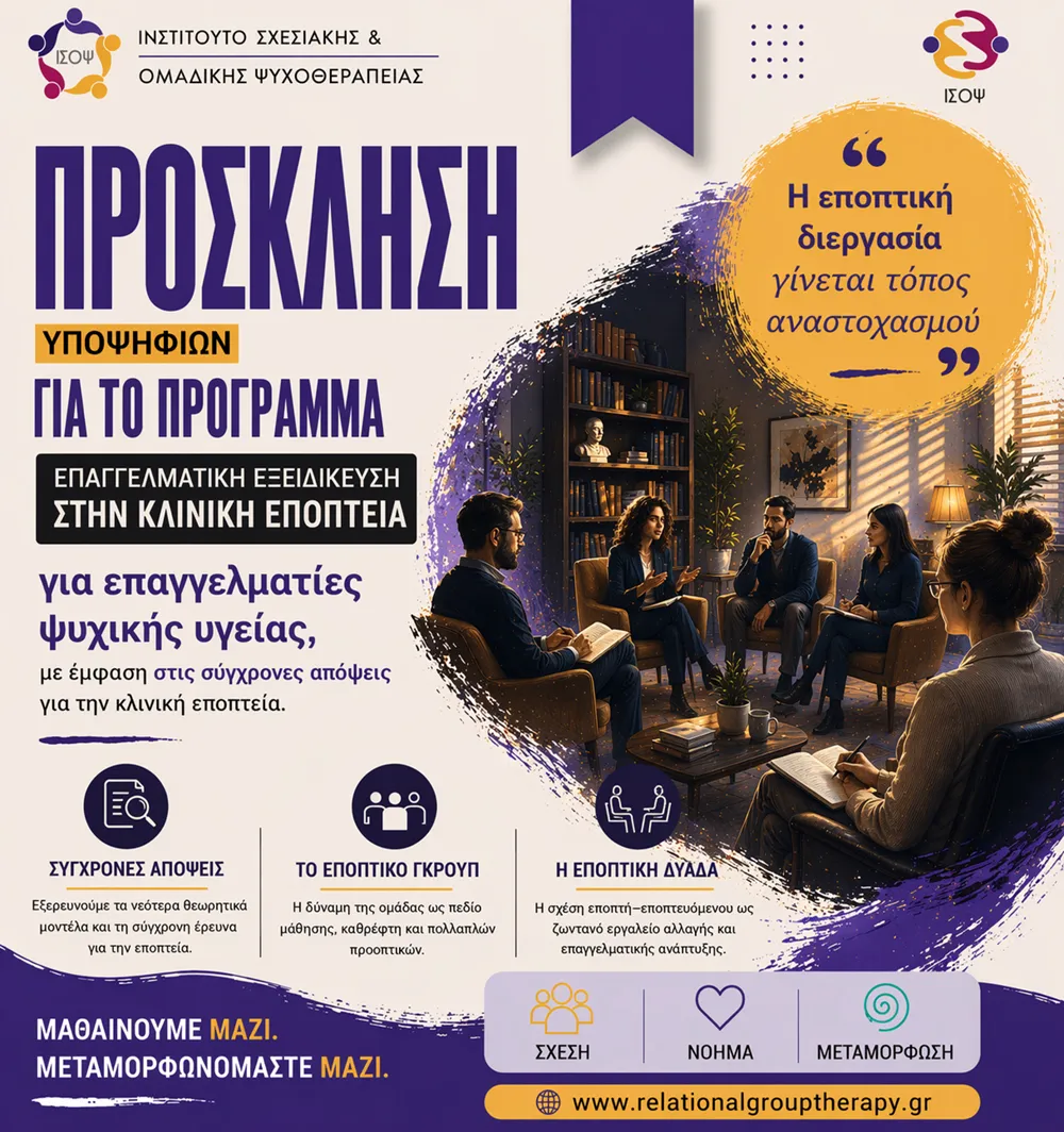 Κύκλος Επαγγελματικής Επιμόρφωσης στη Σχεσιακή Ψυχαναλυτική Κλινική Εποπτεία