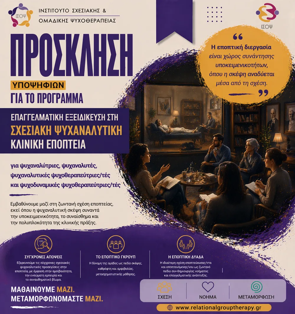 Κύκλος Επαγγελματικής Επιμόρφωσης στη Σχεσιακή Ψυχαναλυτική Κλινική Εποπτεία